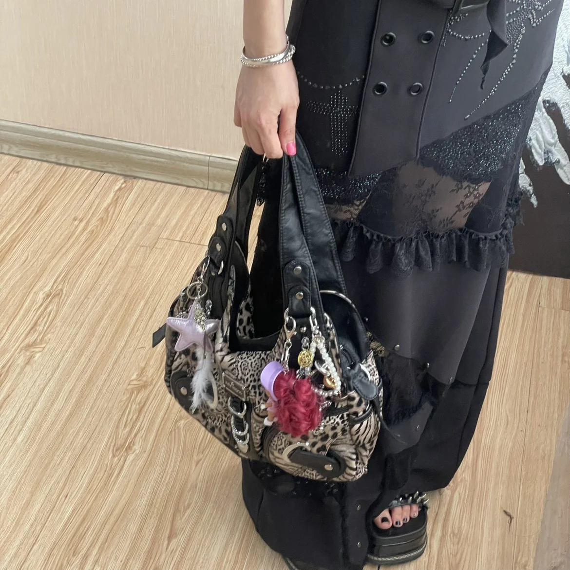 Embrace the retro charm with this Y2K-inspired leopard print tote, perfect for those who love vintage fashion.